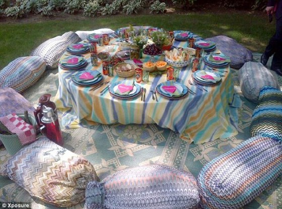 Guests sat on Missoni cushions placed around low-set Moroccan tables