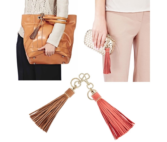 Now, let’s move on to some “inspired by” versions at budget-friendly prices. Asos.com has their cute “Orelia” leather bag tassel” in dark green and chocolate on sale for $17. Unfortunately, the peach-colored “Orelia” shown below is sold out, but because it’s my own, I thought to show you what the actual Asos product looks like. Next, Reiss is selling the “Pattie”, which is a long, elegant loose tassel for $37, discounted from $75.
