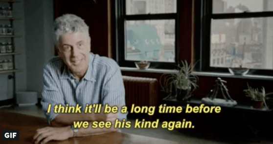 Anthony is gone, but his death leaves a great loss for the world. This is not a sanctimonious or overstated claim. No contemporary public figure, TV personality or writer, has Bourdain’s insight and empathy to highlight the perspective of the underdog, the marginalized , the colonized, to bring awareness to restaurant worker’s rights, immigrant rights, and human rights, and then seamlessly weave that with a Jim-Morrison-like cool factor, dry wit and understated intellect, who is able to educate and give historical context to the masses, while taking a shot or drinking a beer and eating street food—all of which brought an alternative awareness and understanding of cultural and political issues to his audience—and that can never be replaced. It is lost with him forever.